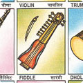 Les instruments de musique sont à l'honneur sur cette image pédagogique indienne.